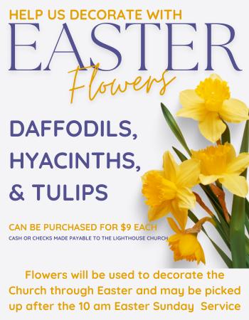 Help us decorate the church for Easter by purchasing flowers through TLC from Church's Nursery! Use the link HERE to place your order today!